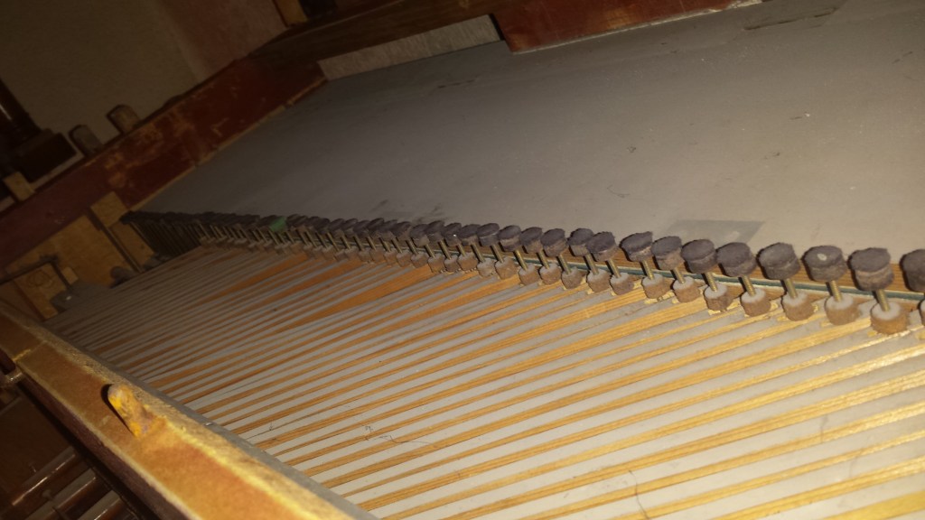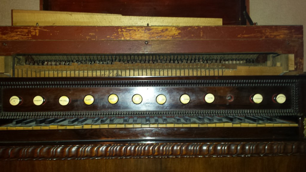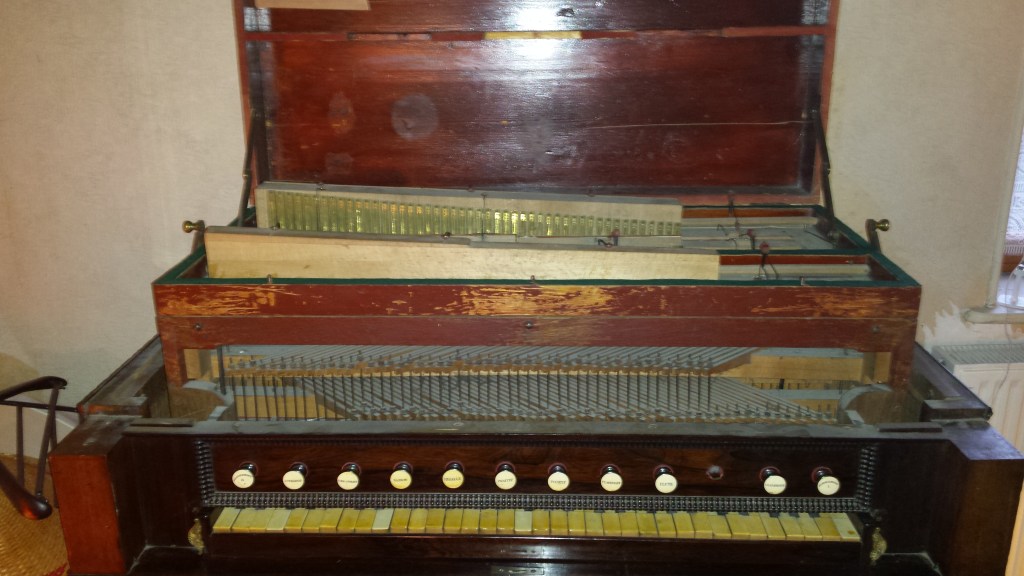 Clavier rétractable de 61 notes / 2 pédales de demi grand jeu. Jeux coupés en basses / dessus