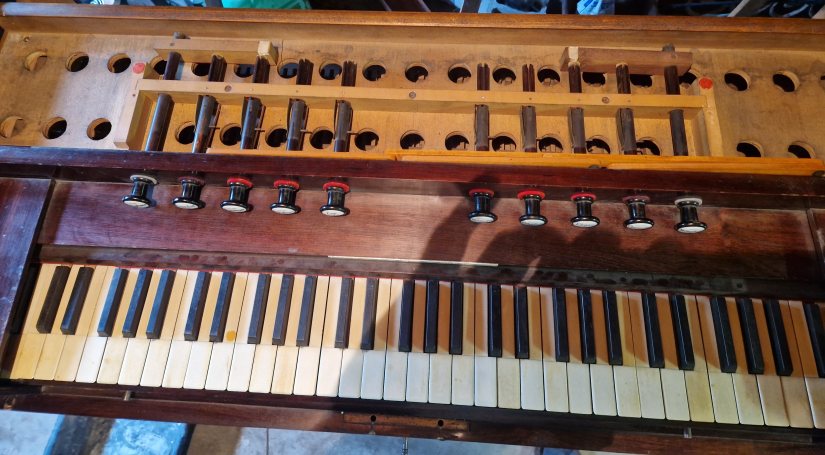 Composition: Mélophone / Bourdon 16 / Basson / Jeu doux / Cor anglais — Flageolet / Hautbois / Flûte 8 / Clarinette / Mélophone